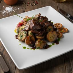 160/100/100 гр.томленная баранина с запеченными овощами с соусом демиглас