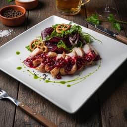170/60/50 гр.грудка индейки, микс салата со свеклой, брусничный соус