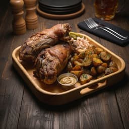 1400/500/50 гр.свиная рулька, припущенная в пивном маринаде, с квашеной капустой и печеным картофелем
