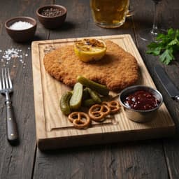 180/50 гр.телятина в хрустящей панировке, корнишоны, лимон гриль, соус