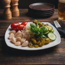 260 гр.свиная шея, томаты, болг. перец, обжар. баклажан, корнишоны, чесноч, заправка