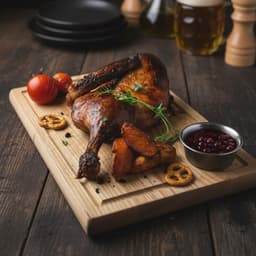 500/120 гр.½ запеченной утки, батат, брусничный соус